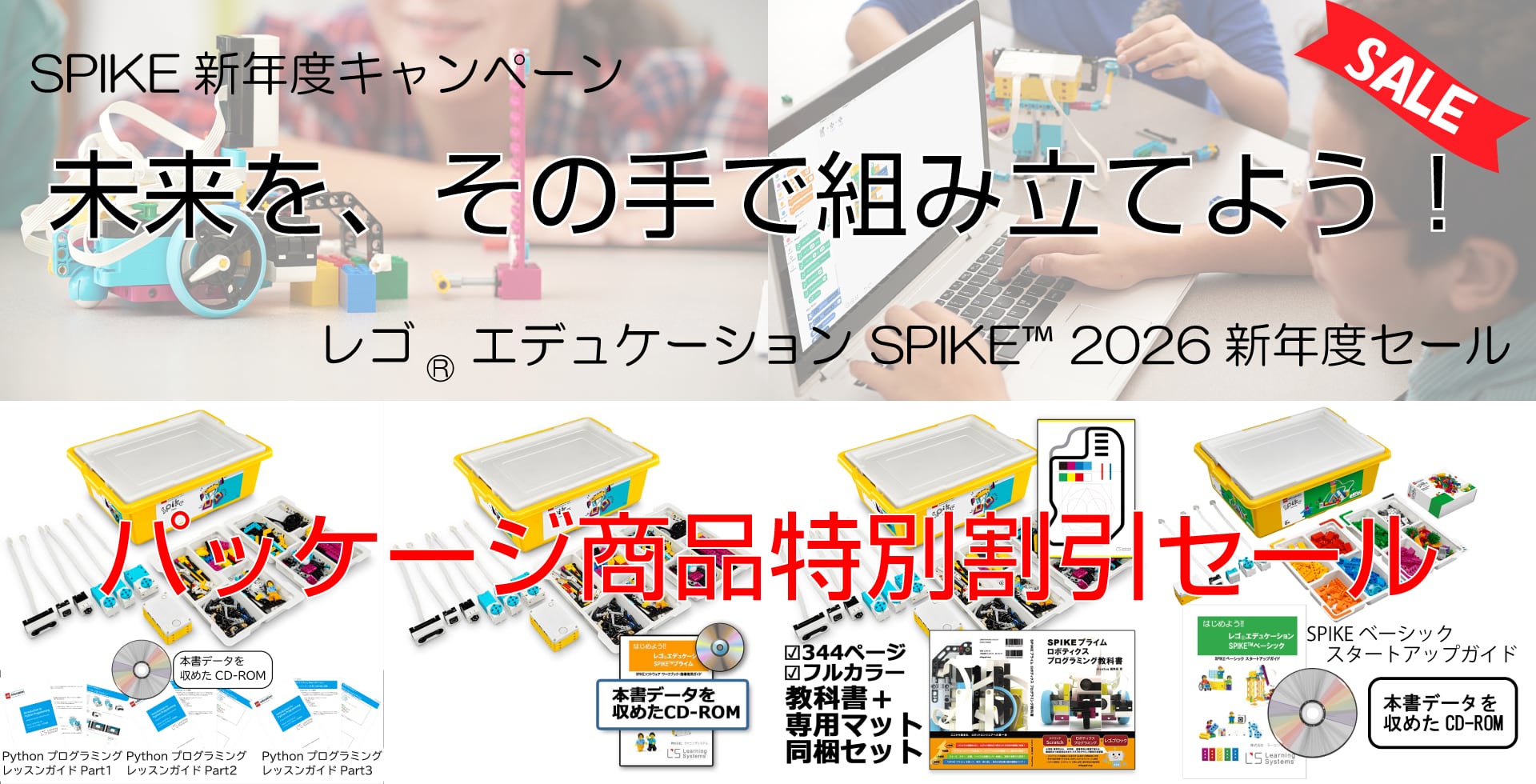 進級・進学おめでとうございます。2026年度も、STEAM教育の最前線を走るSPIKE™シリーズが、子供たちの好奇心を強力にサポートします。ガイドや教科書がセットになったお得なLEGO®エデュケーションSPIKEプライムのパッケージ商品を期間限定で更にお得な10%OFFの特別価格でご用意しました!!